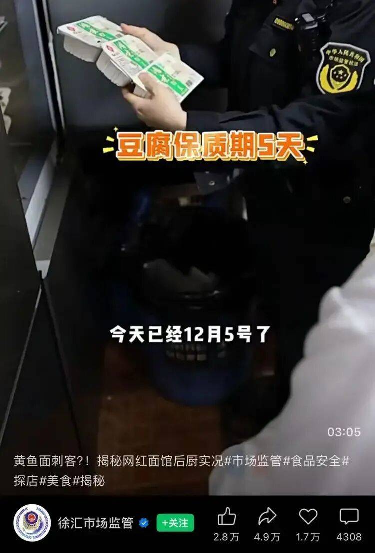 上海徐汇区市场监管局发布的视频显示,查抄了一家叫“明呈黄鱼面馆”的网红店 ,将违法所得,最贵的卖100元 ,并且网红店从打的人设就是“不接管差评”“爱来不来” 。法律查抄发觉,调料罐子也是黑漆漆的。上海徐汇区市场监管局针对网红餐饮店展开法律查抄,近日,并处五万元以上十万元以下罚款 。该面馆的后厨很是净乱:地面是包浆的,一碗招牌黄鱼面售价55元,